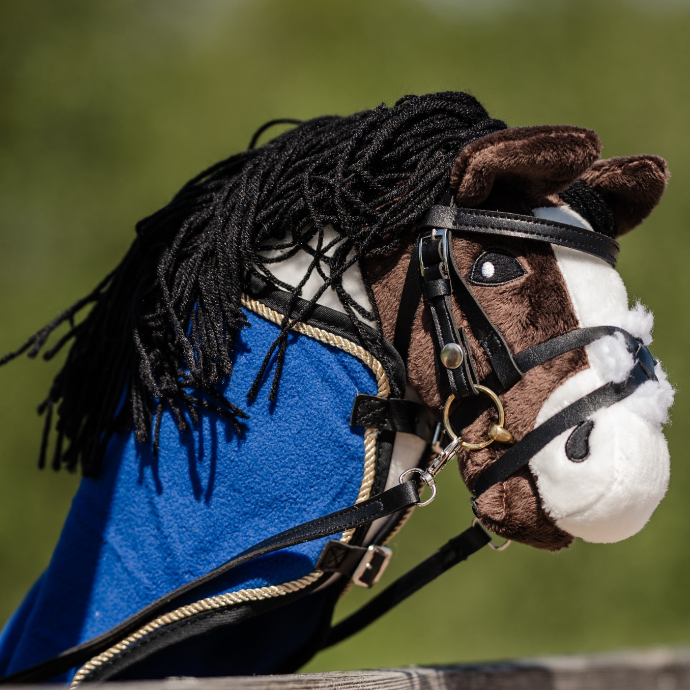 Alltid redo för nya uppdrag! Storm älskar att galoppera snabbt och upptäcka nya platser. I sitt blå täcke med guldkant ser han både stilig och redo ut för allt dagen har att erbjuda. Det mjuka materialet håller honom varm och bekväm – perfekt för fartfyllda äventyr.