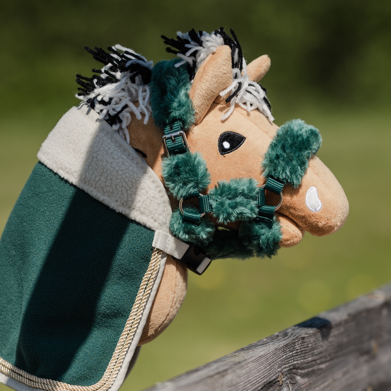Snäll, omtänksam och alltid på gott humör. Mossa trivs bäst ute i naturen, och i sitt gröna täcke med mjuk fleecekant och matchande grimma håller hon stilen även på de lugnaste uteritterna. En mysig outfit för långa, stillsamma dagar i det gröna.