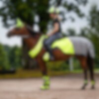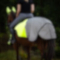 Ratsastusloimi heijastavaa ja fluoresoivaa materiaalia. Pitää hevosen selän lämpimänä. Kokonaan heijastava suuri häntäsuoja. Irrotettava rintaremmi.