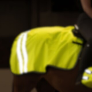 Verryttelyloimi fluoresoivaa 420D polyesteriä heijastinyksityiskohdilla reunusnauhassa ja takana näkyvyyden parantamiseksi. Fleecevuori auttaa pitämään hevosen lämpimänä. Hihnat satulaan kiinnitystä varten helpottavat ja nopeuttavat riisumista ja pukemista. Häntäremmi pitää loimen paikallaan myös tuulisella säällä.