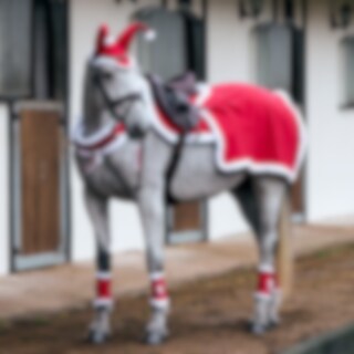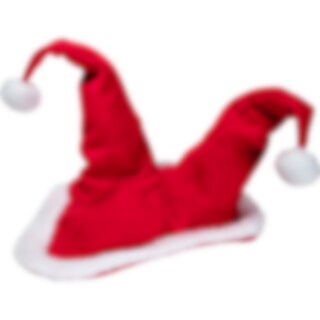 Tonttulakki, jossa on pitkät korvat ja tupsuja. Pehmeä teddyreunus.