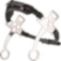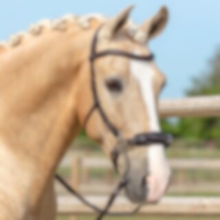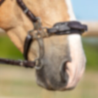 Säädettävä hackamorekuolain pehmeää nahkaa. Pehmustettu turpalaatta. Varsien pituus 17 cm.