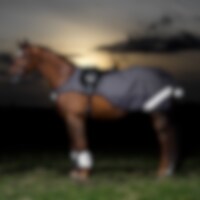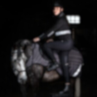 Ratsastusloimi 1200D-polyesteriä, kudotut heijastinraidat ja muut lisäheijastimet parantavat näkyvyyttä pimeällä ratsastettaessa. Vedenpitävä ja hengittävä. Sileä polyesterivuori. Muotoiltu satulan kanssa käytettäväksi, avoin ratsastajan pohkeiden kohdalta.