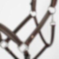 Nahkariimu pehmeästä öljytystä nahasta. Pehmuste turvalla ja niskassa. Soljet molemmin puolin niskaa. Säätö turvan alta.