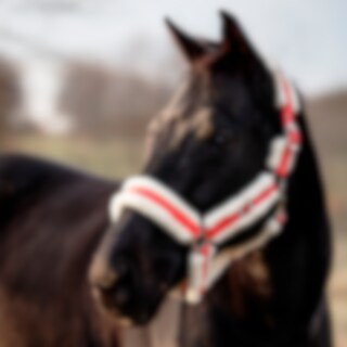 Riimu, jossa tekoturkispäällys turvan, niskan ja poskihihnojen kohdalla.