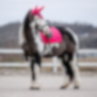 Virkattu huppu kiiltävästä nailonlangasta. Joustavat korvanpaikat takaavat hyvän istuvuuden. Leukahihnan reikä pitää huput tukevasti paikallaan. Kirjailtu Fairfield-logo lurex-langalla ja punottu lurex-terenauha.