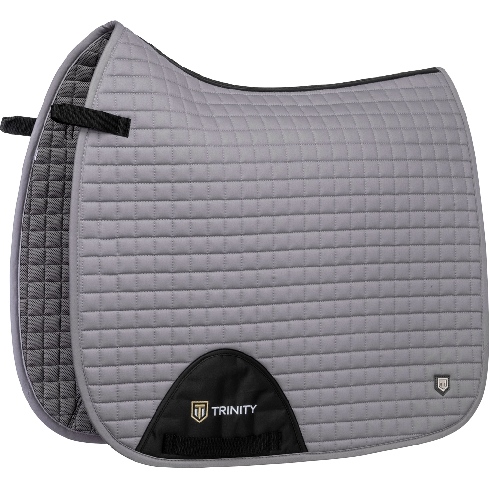 Tikattu puuvillainen neliöhuopa. Sisäpuoli viilentävää teknistä materiaalia, joka siirtää kosteutta pois iholta. Selän 3D-verkkokangas lisää hengittävyyttä. Satulan D-renkaaseen kiinnitettävien joustavien lenkkien ansiosta neliöhuopa soveltuu useimpiin malleihin. Erikoisvahvistettu satulavyön kohta ehkäisee kulumista. Kirjailtu Trinity-logo satulavyön vahvistuksessa ja Trinity-metallilogo vasemmalla puolella.