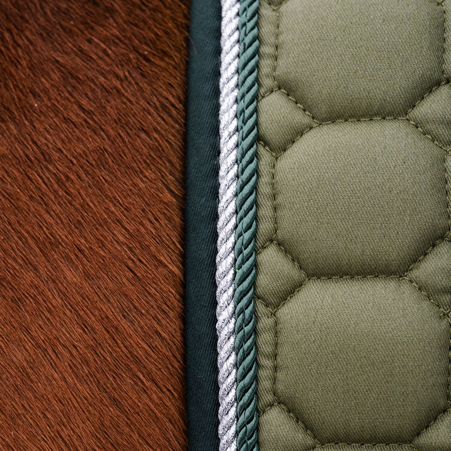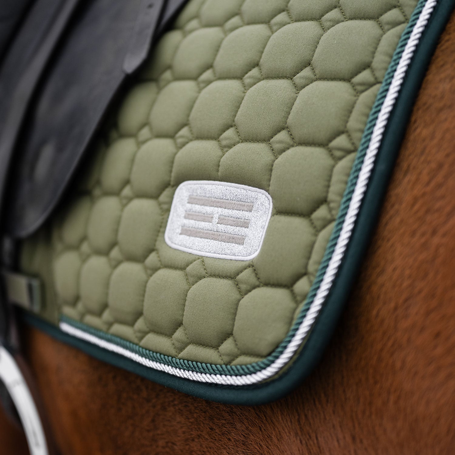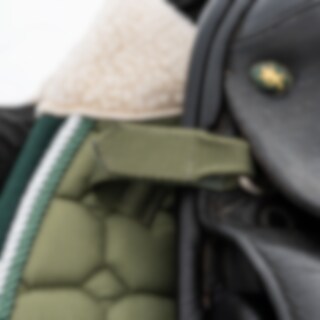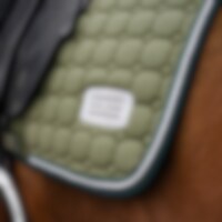 Tikattu neliöhuopa, jonka ulkopinta on kulutusta kestävää puuvillatvilliä. Vahva yhdistelmäpehmuste 300 g polyfill + 1 cm vaahtomuovi luo tukevan neliöhuovan, joka säilyttää muotonsa ja pysyy paikallaan. Sisusta 100 % polyesteristä valmistettua teknistä materiaalia, joka auttaa siirtämään kosteuden pois hevosesta. Teddyvuori hihassa hiertymisen estämiseksi ja 3D-verkkopaneelit selkärangan päällä tehokkaampaa ilmanvaihtoa varten. Erikoisvahvistettu satulavyön kohta lisää kulutuskestävyyttä ja lyhyet hihnat satulan d-renkaaseen kiinnitystä varten tarkoittavat, että neliöhuopa sopii useimmille satuloille. Koristeina kaksi silkkiterenauhaa ja kirjailtu, kimaltava logo.