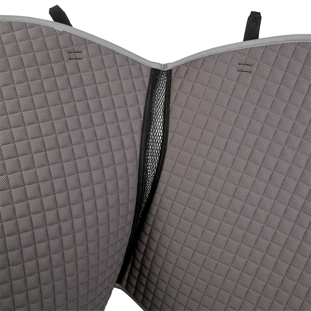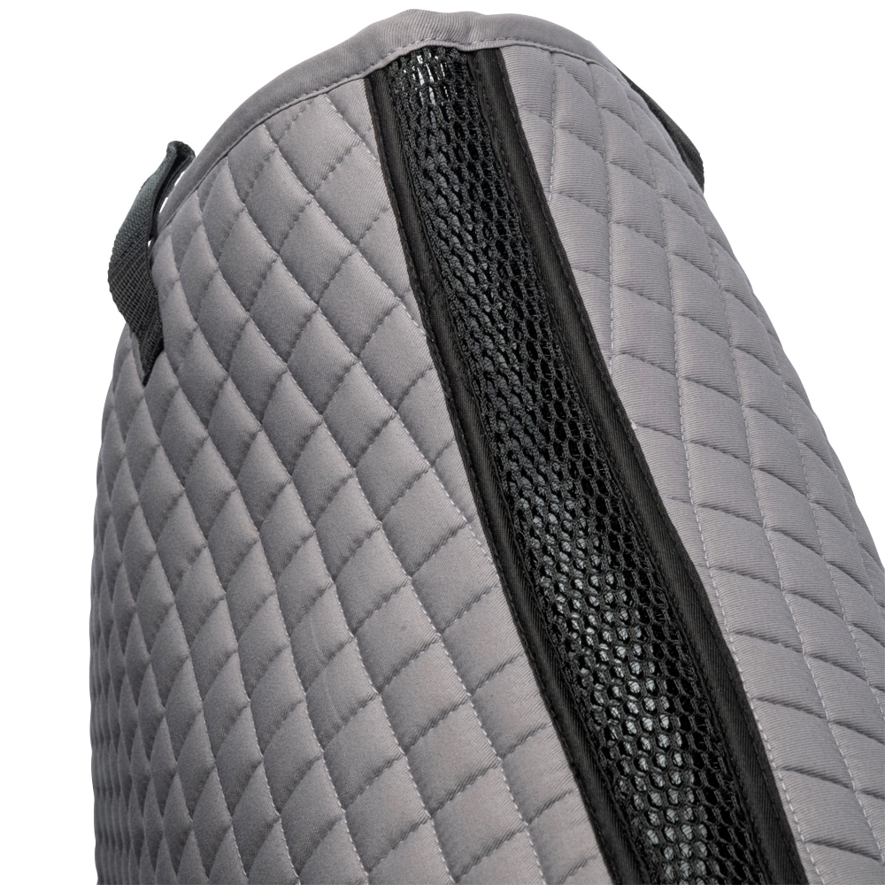 Tikattu puuvillainen neliöhuopa. Sisäpuoli viilentävää teknistä materiaalia, joka siirtää kosteutta pois iholta. Selän 3D-verkkokangas lisää hengittävyyttä. Satulan D-renkaaseen kiinnitettävien joustavien lenkkien ansiosta neliöhuopa soveltuu useimpiin malleihin. Erikoisvahvistettu satulavyön kohta ehkäisee kulumista. Kirjailtu Trinity-logo satulavyön vahvistuksessa ja Trinity-metallilogo vasemmalla puolella.