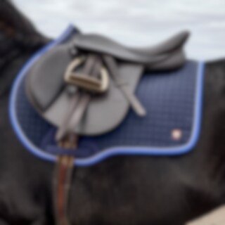 Neliöhuopa, jonka ulkopuoli on vahvaa puuvillatvilliä ja pehmuste 700 g:n polyesterihuopaa. Tukeva neliöhuopa, joka säilyttää muotonsa pesusta toiseen ja pysyy paikallaan satulan alla. Alapuolen ilmava vohvelikuvioinen puuvilla pitää lämpötilan hevoselle miellyttävänä. 3D-verkkokangas selkärangan kohdalla kuljettaa kosteutta pois ja antaa ihon hengittää. Helppo pitää puhtaana karvoista ja liasta. Kontrastivärinen reunusnauha ja pehmustettu terenauha puuvillaa. Soveltuu erinomaisesti brodeerattavaksi.