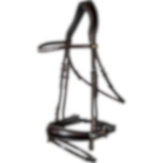 Aachensuitset eurooppalaista nahkaa. Vuorattu, 4,5 cm leveä turpahihna. Kokonaan irrotettava alaturpahihna. Pehmeästi vuorattu kaareva niskahihna ja valkoisilla kivillä koristeltu kaareva otsapanta. Kasviparkittu nahka.