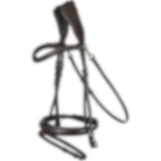 Aachensuitset pehmeää nahkaa. Kaareva vuorattu otsapanta, tarrakiinnitys. Vuorattu turpahihna ja irrotettava alaturpahihna. Säädettävä, irrotettava leukahihna, poskihihnoissa ohjashakaset. Leveä kaareva niskaosa ei paina hevosen herkkiä korvantaustoja.