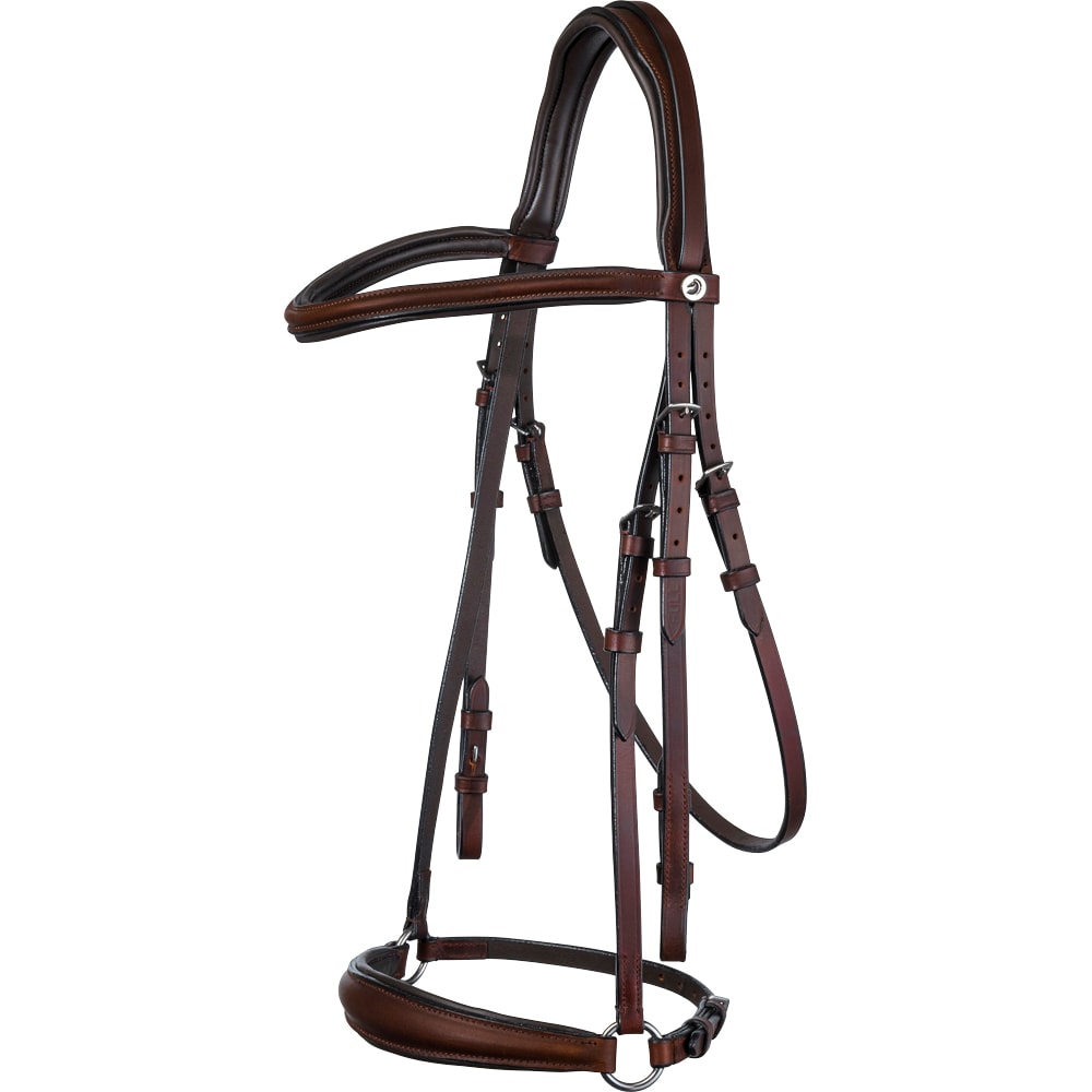 Remonttisuitset, joissa anatomisesti muotoiltu niskahihna ja kaareva otsapanta. Pehmusteet niskassa, otsapannassa ja turvalla. Poskihihnoissa ohjashakaset.