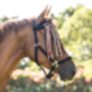Tarrakiinnitteinen kärpäsotsapanta, pehmeä keinoturkis ehkäisee hiertymiä.