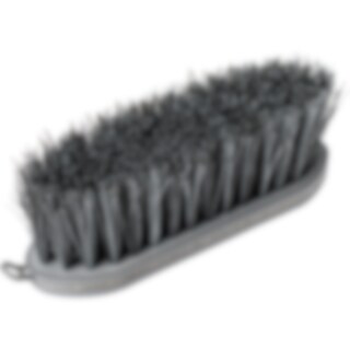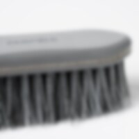 Juuriharja, jossa kahva ja hienoja, valkoisia koristekiviä. Hieman jäykemmät PP-harjakset sopivat esimerkiksi kuivuneelle kuralle ja hielle. Sopii erinomaisesti myös esimerkiksi jalkasuojien sisäpinnan harjaamiseen. Muista puhdistaa harjat säännöllisesti miedolla hevosshampooliuoksella, huuhtele ja anna kuivua hyvin ennen käyttöä. Näin ne pysyvät hygieenisinä ja tuoreina ja kestävät myös pidempään, eikä niitä tarvitse vaihtaa niin usein. Sopii pienempään käteen. Pituus 17 cm.