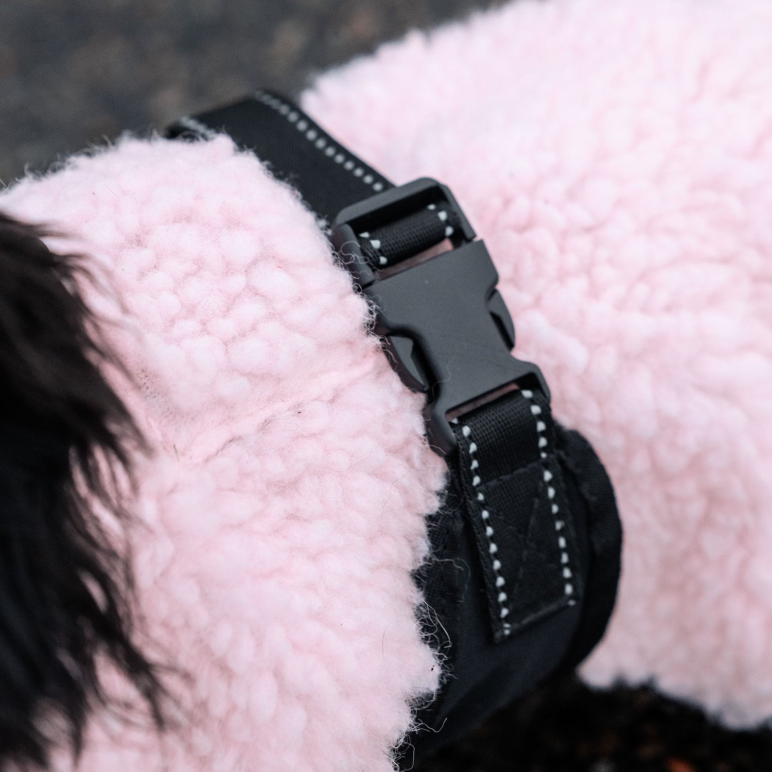 Pitkänukkaisesta villasekoitteesta valmistettu (50% Villam 50% polyesteri) lämmin takki, jonka korkean kauluksen voi taittaa alas avattavan tarrakiinnityksen ansiosta. Kiristysnyöri kaula-aukossa parantaa istuvuutta. Säädettävä mahavyö ja joustavat säädet