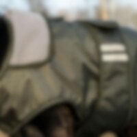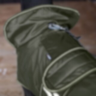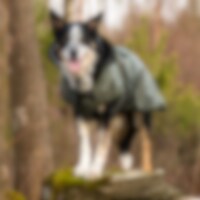 Sadetakissa notkea materiaali ja kevyt ja lämmin fleecevuoraus. Takin vedenpitävän ulkopinnan materiaalina on 210D-polyesteri, vesipilari 3000 mm, joka pitää koiran kuivana. Korkea hengittävyysarvo 3000 MVT ehkäisee kosteuden tiivistymisen takin alle. Hei