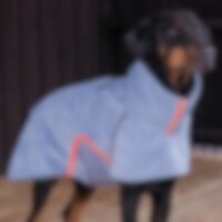 Fleecetakki, jonka korkean kauluksen voi avattavan tarrakiinnityksen ansiosta taittaa alas. Aukko taluttimelle kaulapannan ja halkio valjaiden kohdalla. Mahavyössä tarrasäätö. Joustavat jalkalenkit. Sopii hyvin traxx-sadetakin alla käytettäväksi kylmällä