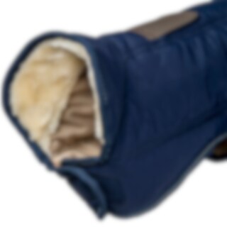 Koirantakki 100 % vettähylkivää taslan-polyesteriä. Vuoraus superpehmeää fleeceä ja samettia, täytteenä 180 gramman polyfill. Tikatut raidat takaavat mukavan tiiviin istuvuuden. Takaa hieman pidempi malli pitää koiran lämpimänä myös kylmällä säällä. Heijastava reunusnauha takaa näkymisen pimeässä. Korkeassa taitettavassa kauluksessa on paksu ja pehmeä lampaankarvaa jäljittelevä vuoraus, 100 % polyesteriä. Aukko taluttimelle sekä kauluksessa että selässä, jotta voit valita itsellesi ja koirallesi sopivan taluttimen.