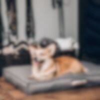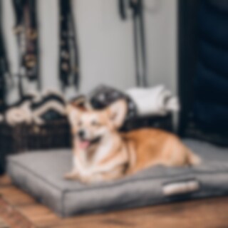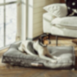 Koiranpatja, kierrätyspolyesteriä. Päällisen voi irrottaa pesua varten. Edessä kierrätysmateriaalista valmistettu JH-hihna, josta koiranpetiä on helppo kantaa. Mitat: S: 70x55x10. M: 90x62x10. L: 110x70x10.