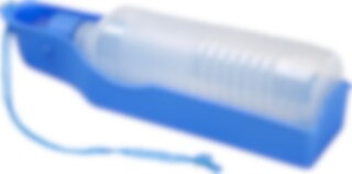 Vesipullo, jossa ulostaittuva kulho. Kätevä matkoilla. 26 x 6,5 x 7 cm.