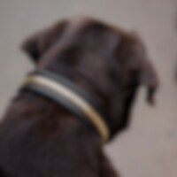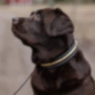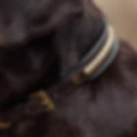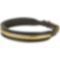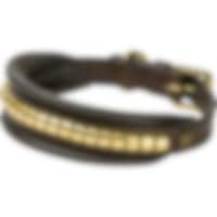Koiran kaulapanta, suunniteltu yhteistyössä Carl Hedinin ja Iris-koiran kanssa. Kaulapanta pehmeää kasviparkittua nahkaa, koristeena niitit. Korotettu pehmuste. Messinginväriset soljet.