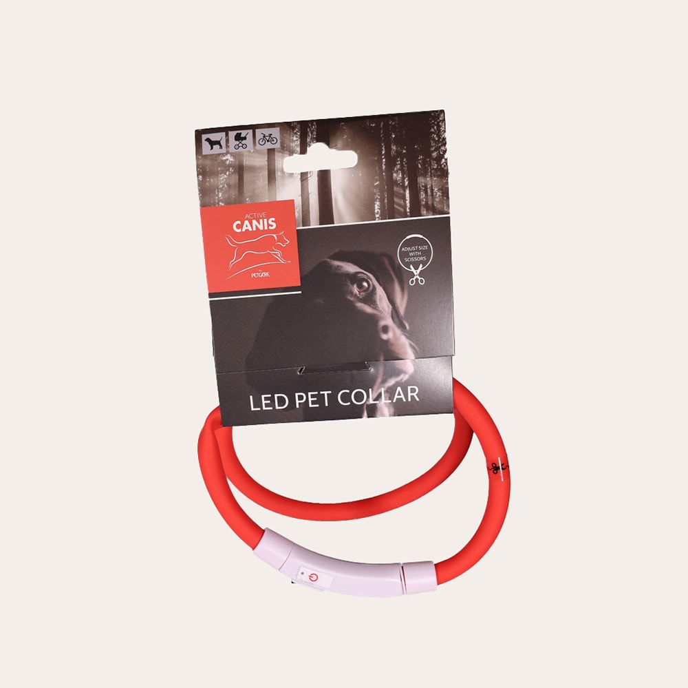 LED-kaulapanta, kolme valoasetusta: nopeasti vilkkuva, hitaasti vilkkuva ja tasaisesti palava valo. Panta ladataan USB-johtoa käyttämällä. Pannan pituus on 80 cm. Kokoa on helppo säätää leikkaamalla sopivaan pituuteen. Akun lataaminen kestää noin 30 minuuttia, tehokkaan valon käyttöaika 6–8 tuntia. Sisältää USB-latausjohdon.