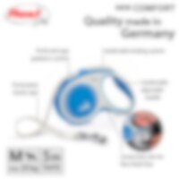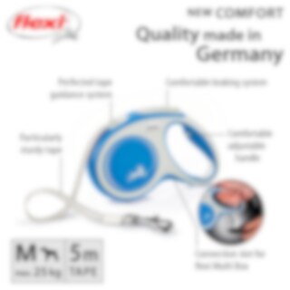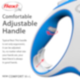 Kelatalutin FLEXI:n patentoidulla jarrujärjestelmällä. 5 m pitkä talutushihna enintään 25 kg painaville koirille. Säädettävällä kahvajärjestelmällä.