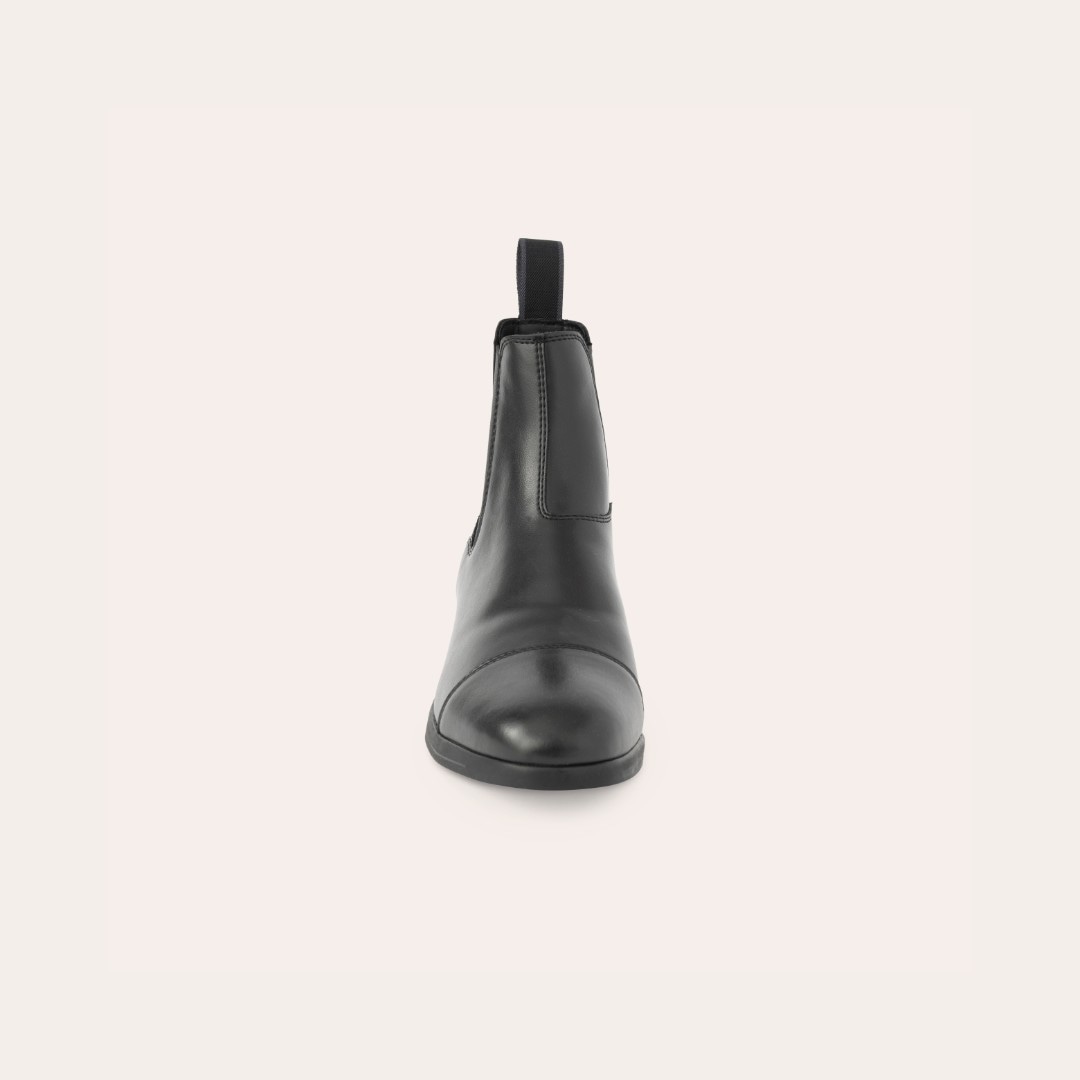 Jodhpur-ratsastuskengät pehmeästä vettä hylkivästä synteettisestä materiaalista, joka on helppo pyyhkiä puhtaaksi. Sivussa joustavat resorit. Kumipohja.