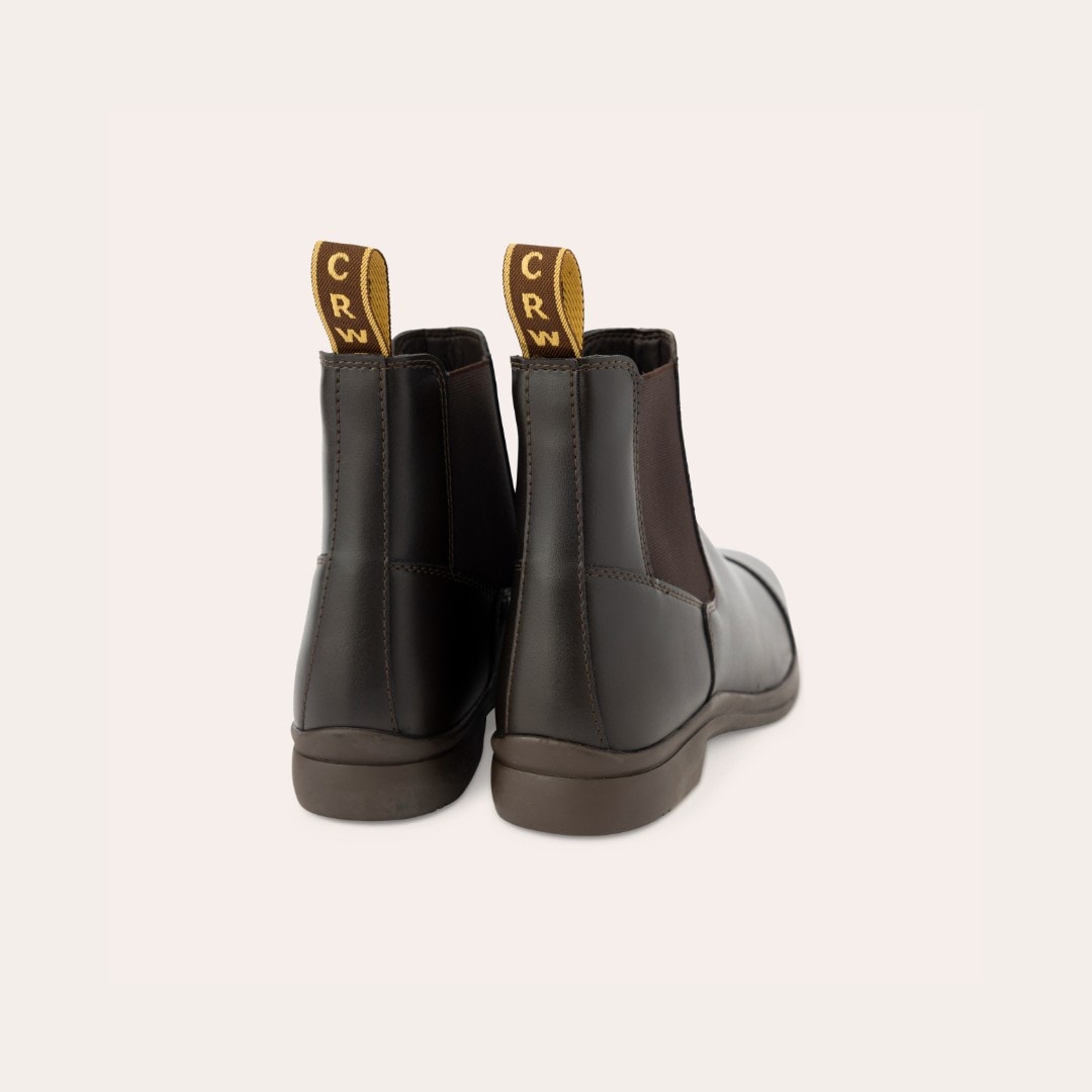 Jodhpur-ratsastuskengät pehmeästä vettä hylkivästä synteettisestä materiaalista, joka on helppo pyyhkiä puhtaaksi. Sivussa joustavat resorit. Kumipohja.