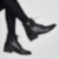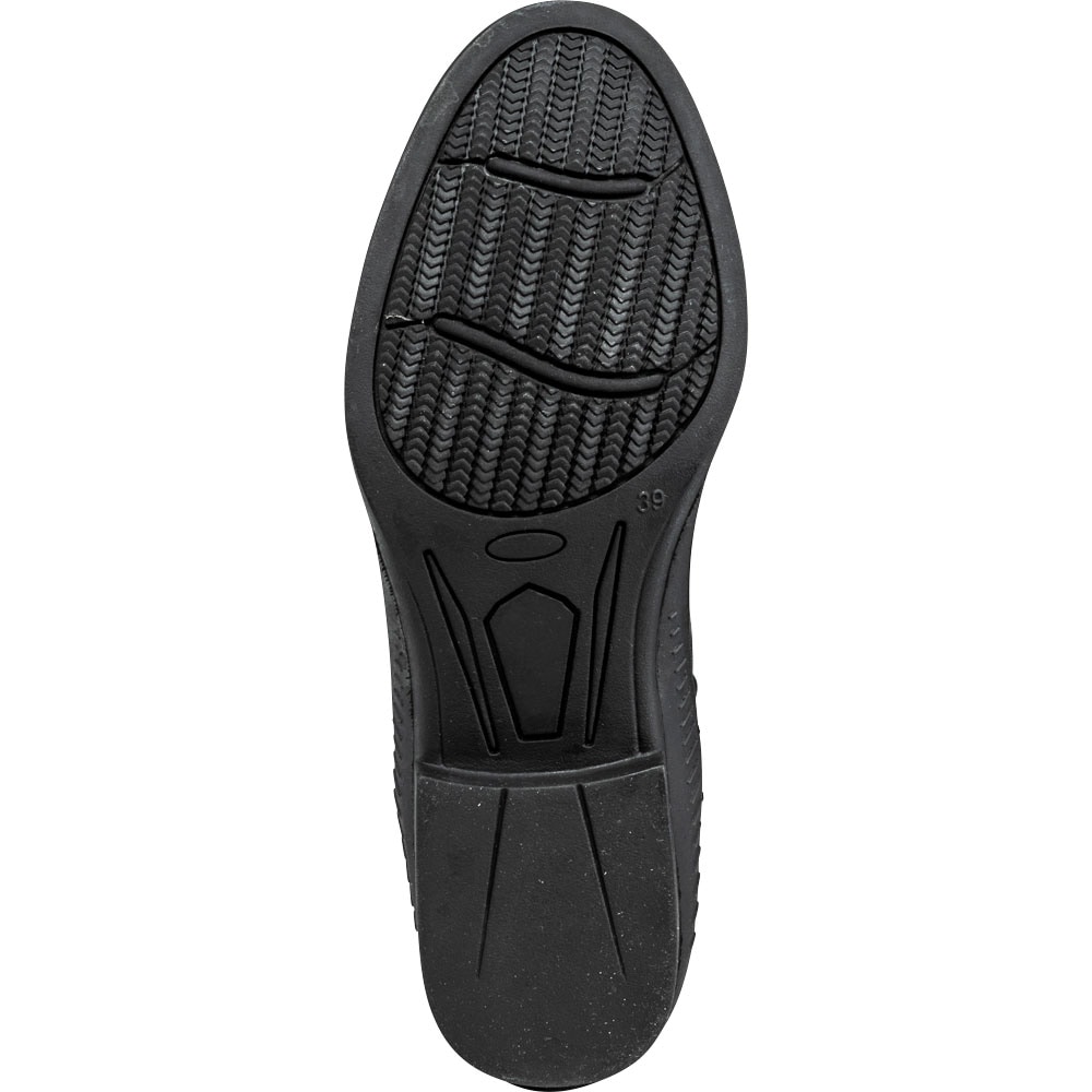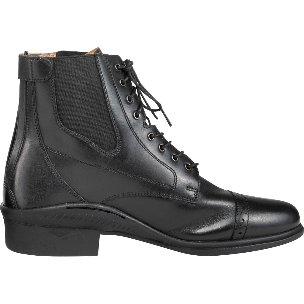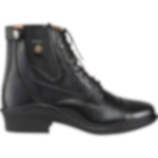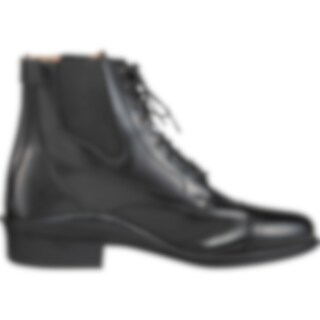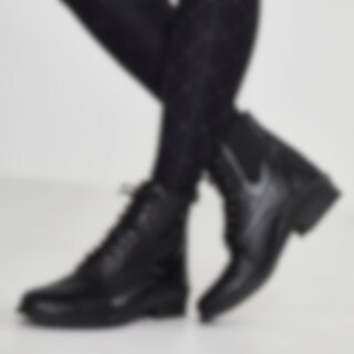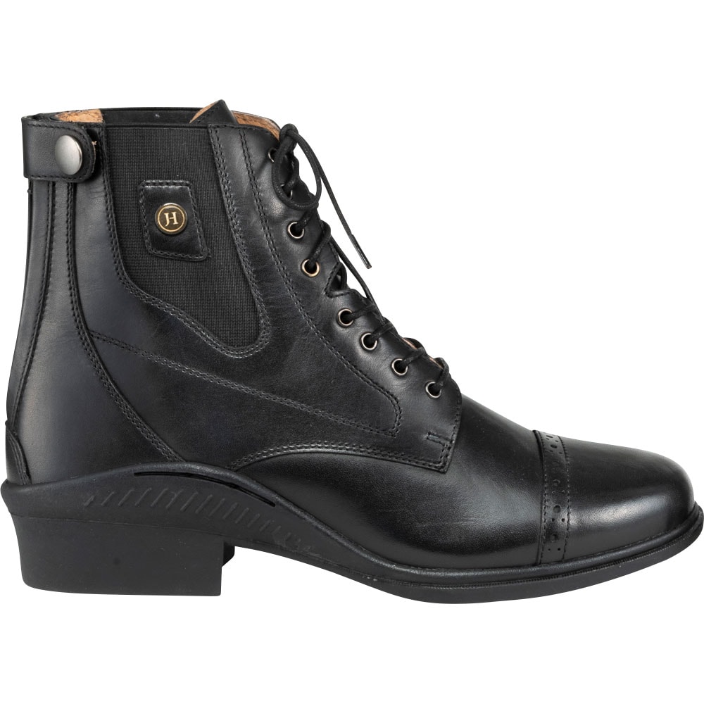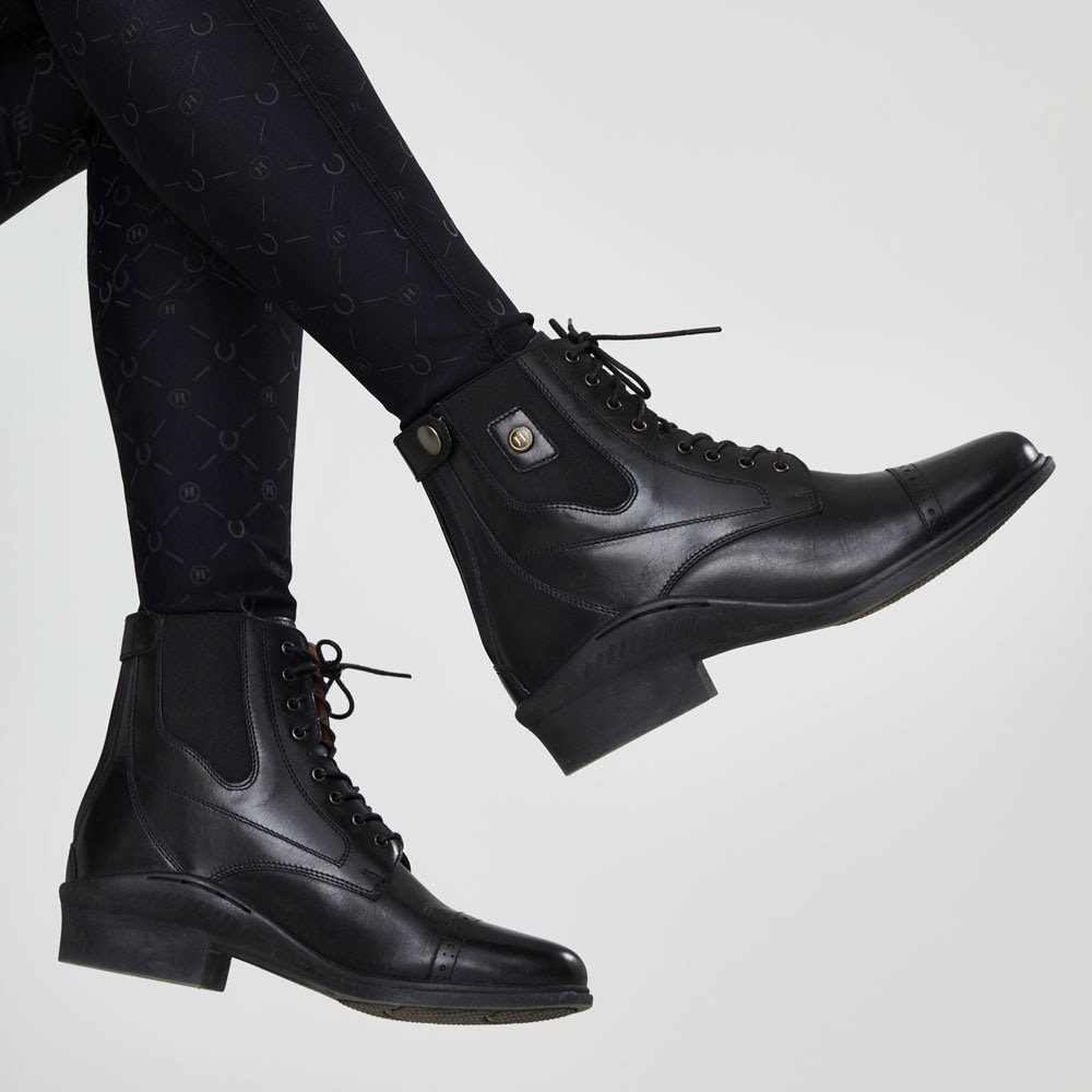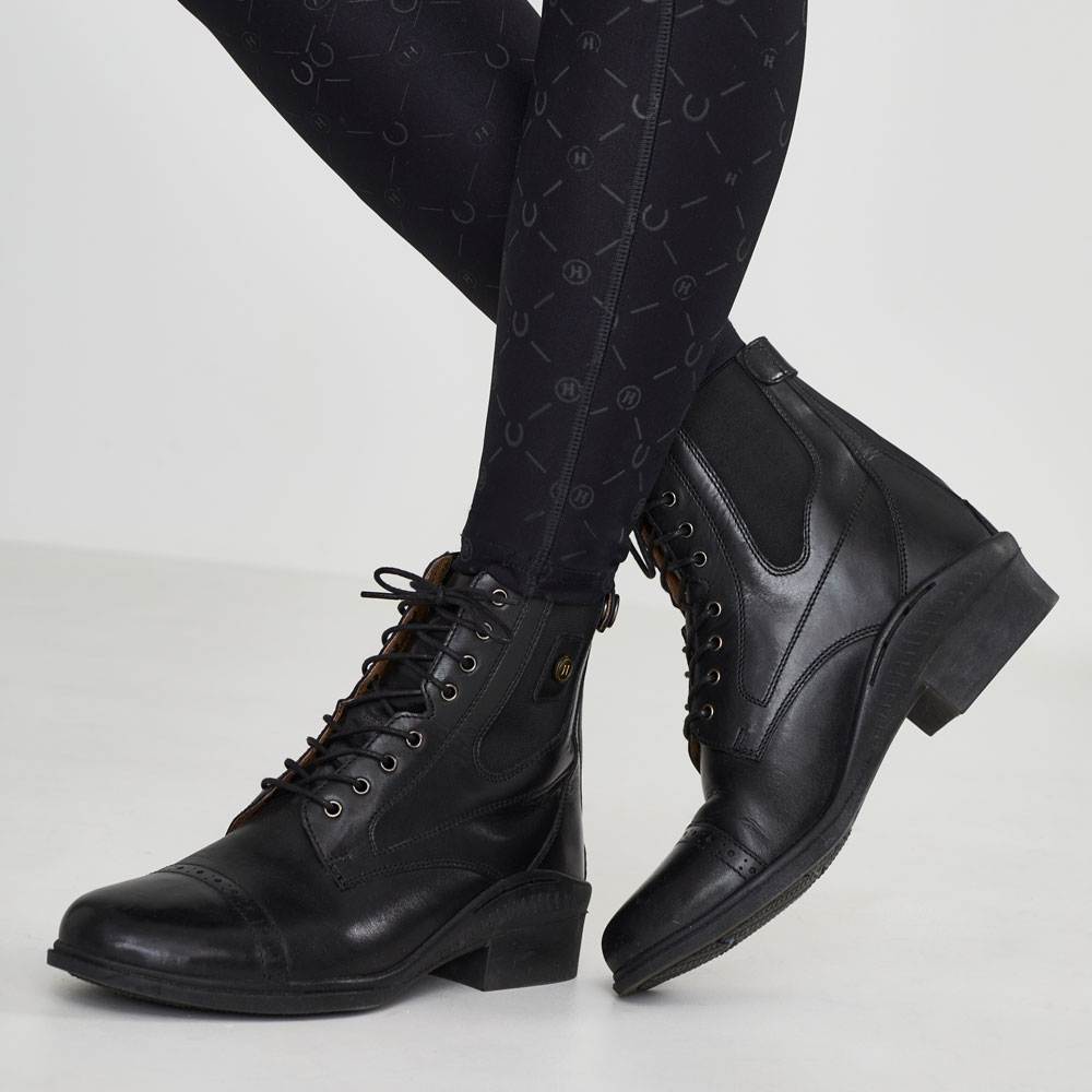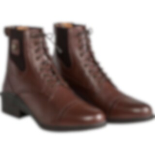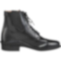 Klassiset jodhpurit, joissa nyöritys ja reikäkuviointi. Vetoketju takana, joustin sivulla. Vuori nahkaa, sisäpohja keinonahkaa. Ulkopohja kumia.