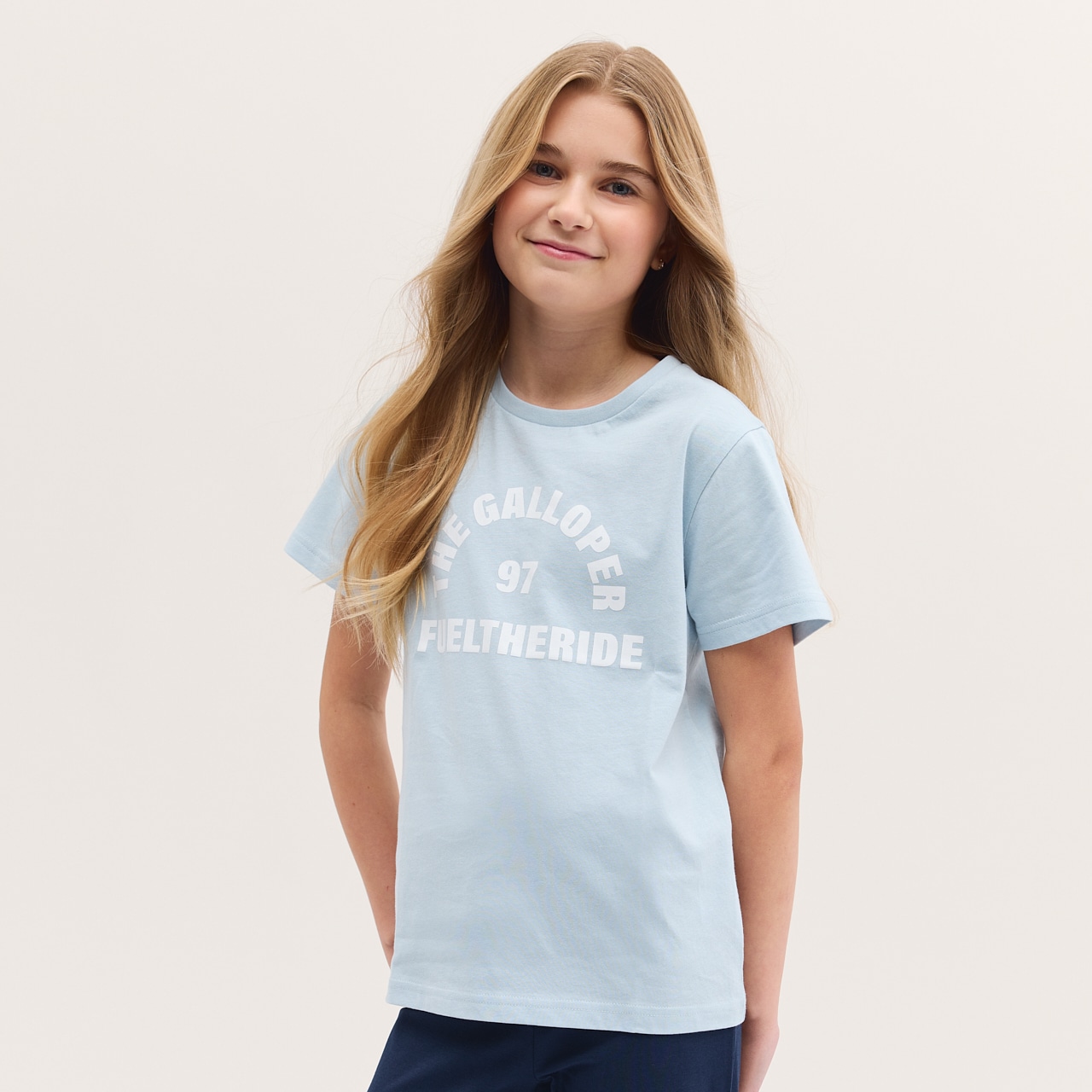 Pyöreäkaulainen T-paita pehmeää puuvillaa. Painettu kuva.