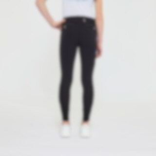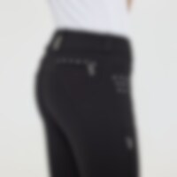 Ratsastushousut joustavaa teknistä neulosmateriaalia, satulaleikkaus. Mukavat muotonsa säilyttävät housut kestävät kulutusta ja hylkivät likaa. Grippipolvipaikat. Grippi jatkuu reiden sisäpinnalle ja antaa optimaalisen pidon ja tuen satulassa kokopaikkaisten housujen tapaan. Joustavat lahkeensuut. Normaalikorkuinen vyötärö ja kaksoiskiinnitys varmistavat istuvuuden ja mukavuuden. Kaksi taskua edessä ja kaksi vetoketjutaskua takana. Huomaamaton reisitasku puhelimelle. Taskujen koristekivet antavat housuille tyylikkään ilmeen. Istuvuudeltaan pienehköä, suosittelemme valitsemaan yhtä kokoa suuremman.