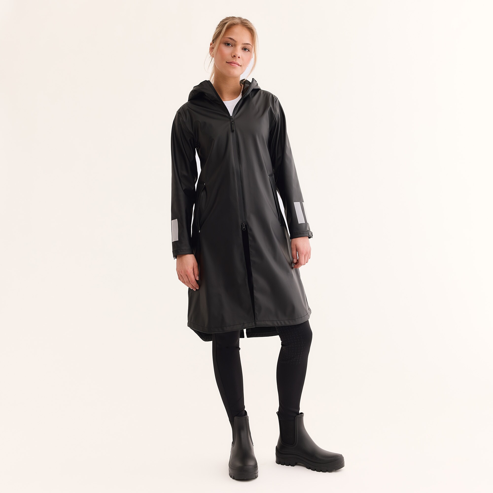 Toiminnallinen vedenpitävä sadetakki pitää sinut kuivana ja on mukavana säällä kuin säällä. Suojaava säädettävä huppu, jossa kiristysnauha. Klassinen, tuulen- ja veden pitävä malli toimii sade- ja kurasäällä. Väljän istuvuuden ansiosta alle voi pukea lämmittäviä vaatteita, joten takki sopii erinomaisesti pitkäaikaiseen käyttöön. Kaksi kätevää taskua ja lisäsuojaa tuova polvipituus. Edessä kätevä vetoketjukiinnitys, takana liikkumisvapautta tuova halkio. Hyvin erottuvat heijastavat yksityiskohdat hihoissa ja selässä parantavat turvallisuutta ja näkymistä pimeässä.