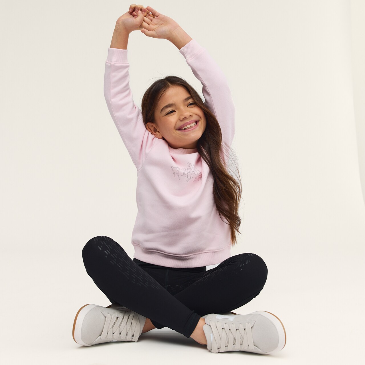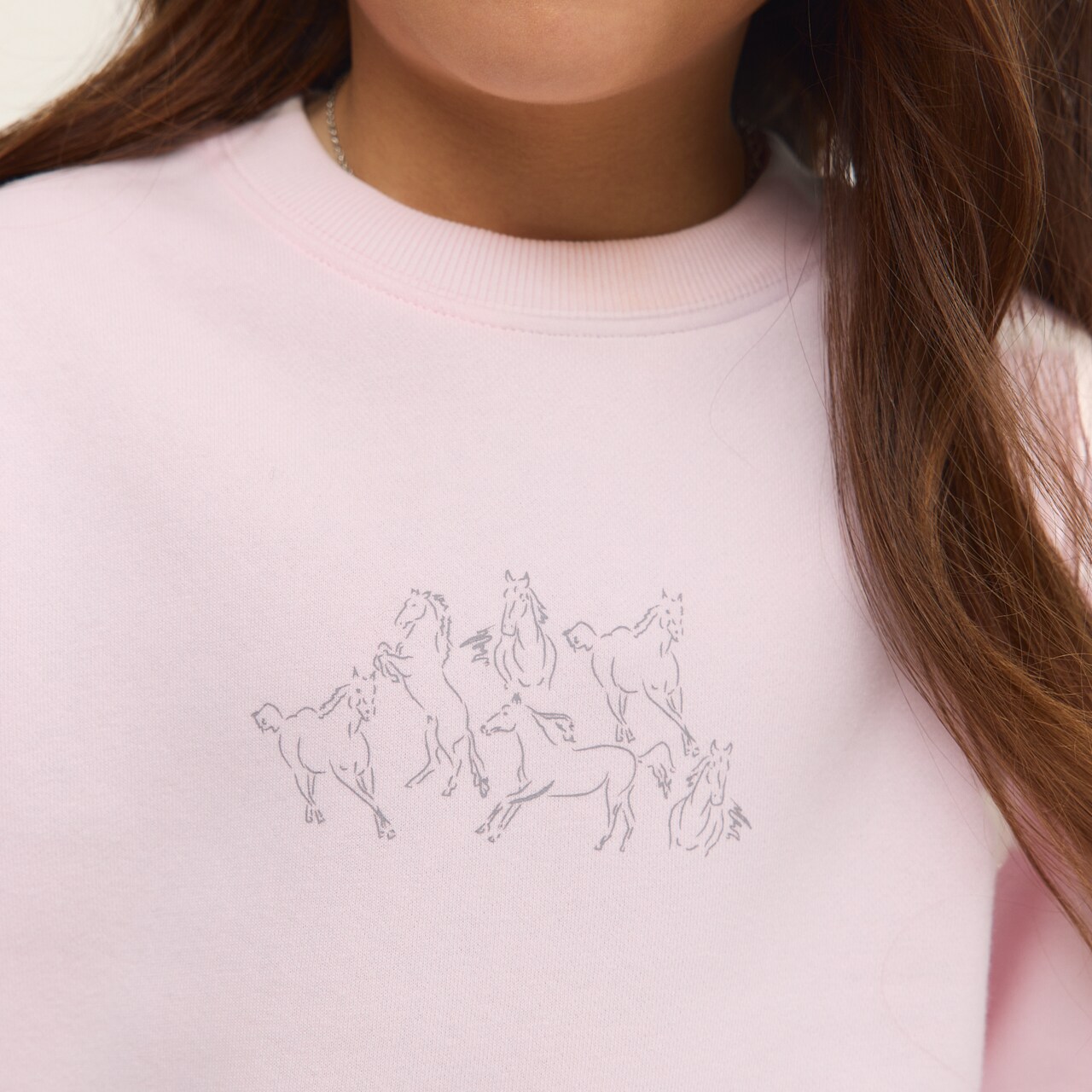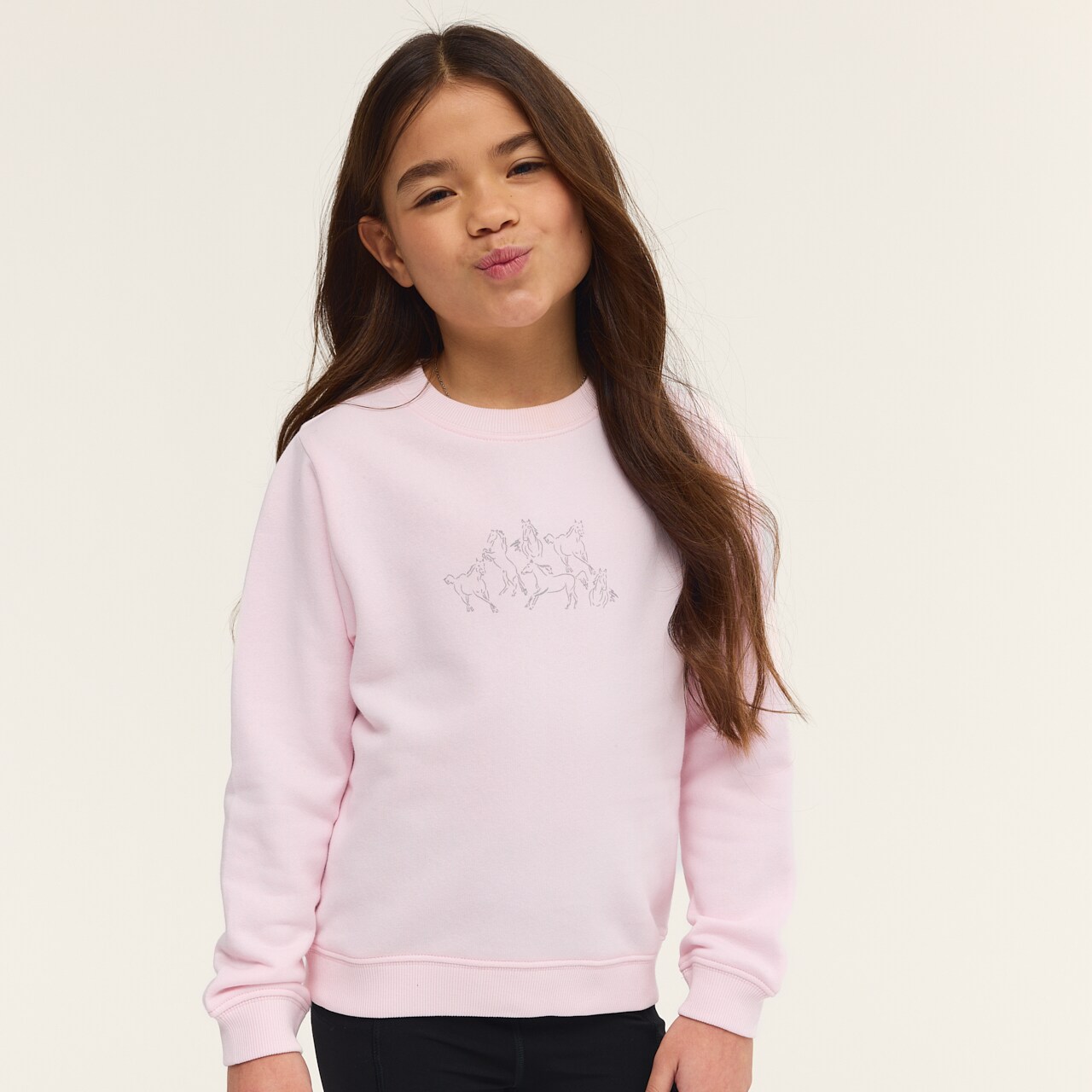 Klassinen collegepaita pehmeää puuvillaa, harjattu sisäpuoli. Ribbineulotut hihansuut ja koristeellinen painatus rinnuksessa.