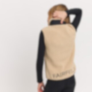 Korkeakauluksinen teddyfleeceliivi. Tikatut yksityiskohdat olkapäissä, rintataskuissa ja kauluksessa tekevät liivistä modernin ja trendikkään. Kaksi kätevää etutaskua ja rintatasku, jotka kaikki suljetaan vetoketjulla. Fairfield-logo selässä. Rento istuvuus.