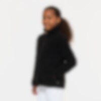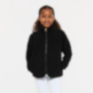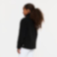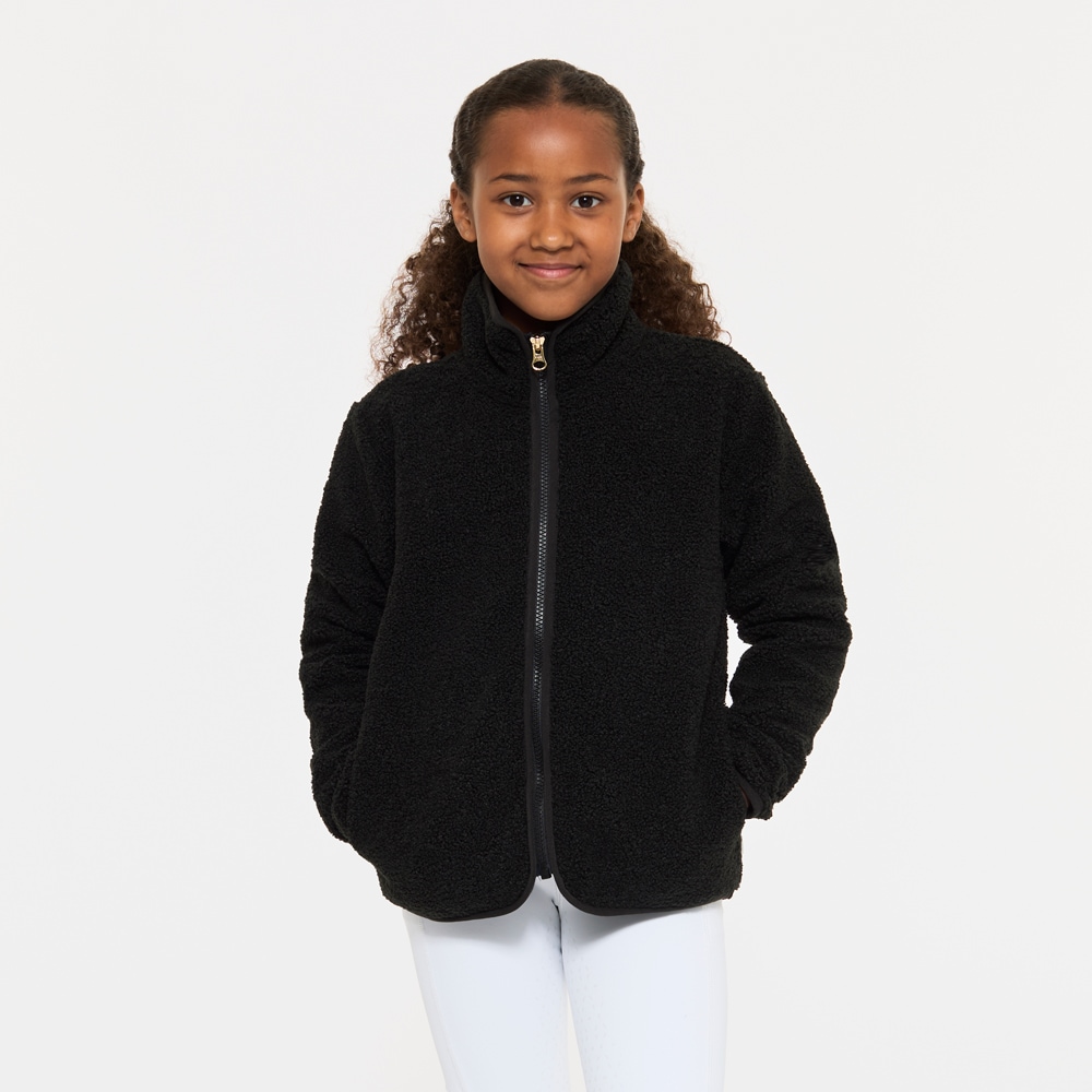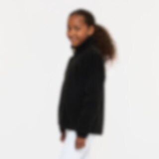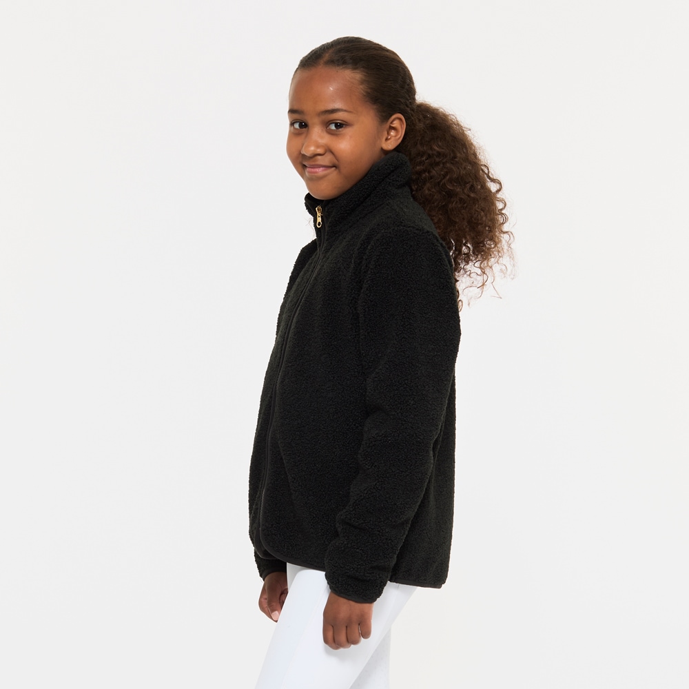Pusero pehmeää fleeceä, korkea kaulus ja edessä vetoketju ja kaksi avotaskua.