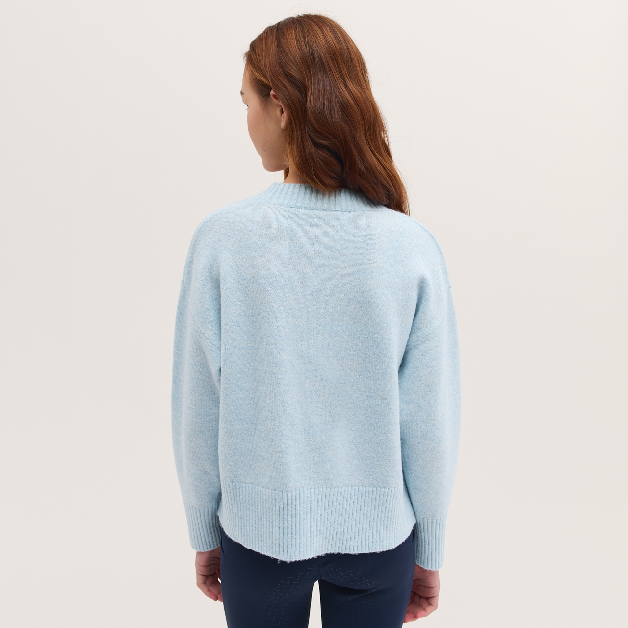 Pehmeä ja mukava neulepusero. Tilava malli, pyöreä kaula-aukko, ribbineulos hihansuissa ja helmassa.