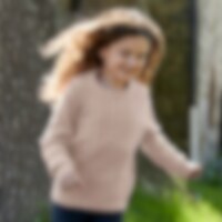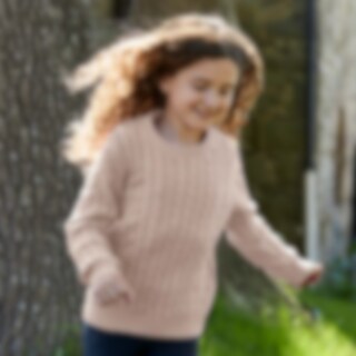 Palmikkoneule, jossa pyöreä pääntie, resori helmassa ja hihansuissa.