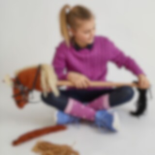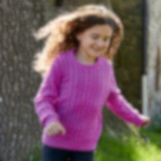 Palmikkoneule, jossa pyöreä pääntie, resori helmassa ja hihansuissa.