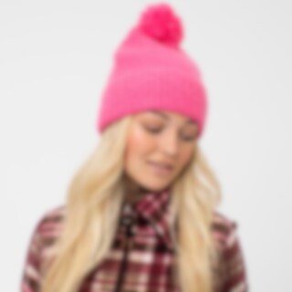Pehmeä palmikkoneulemyssy. Tyylikkäässä myssyssä on tupsu ja leveä käänne.