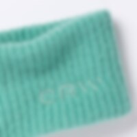 Lämmin ja pehmeä otsapanta, joustinneuletta. Logobrodeeraus.