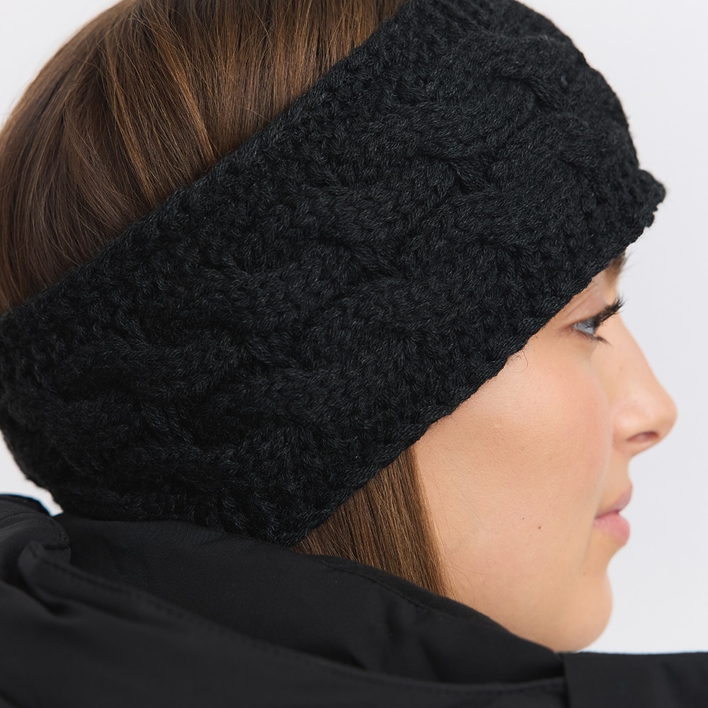 Lämmin palmikkoneulepanta. Sisäpuolella pehmeä fleecevuori.