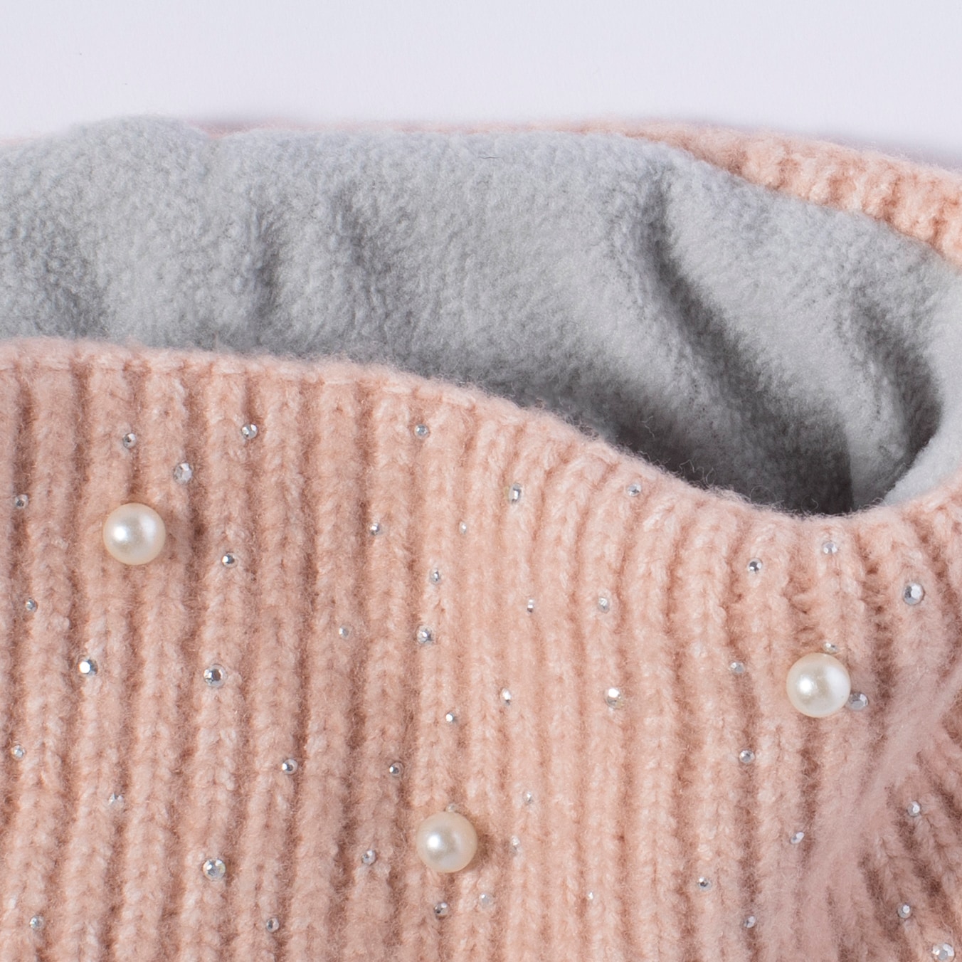 Fleecevuorinen joustinneulepanta. Panta on koristeltu helmillä ja strassikivillä, jotka antavat sille huolitellun ja modernin ilmeen. Yksi koko.
