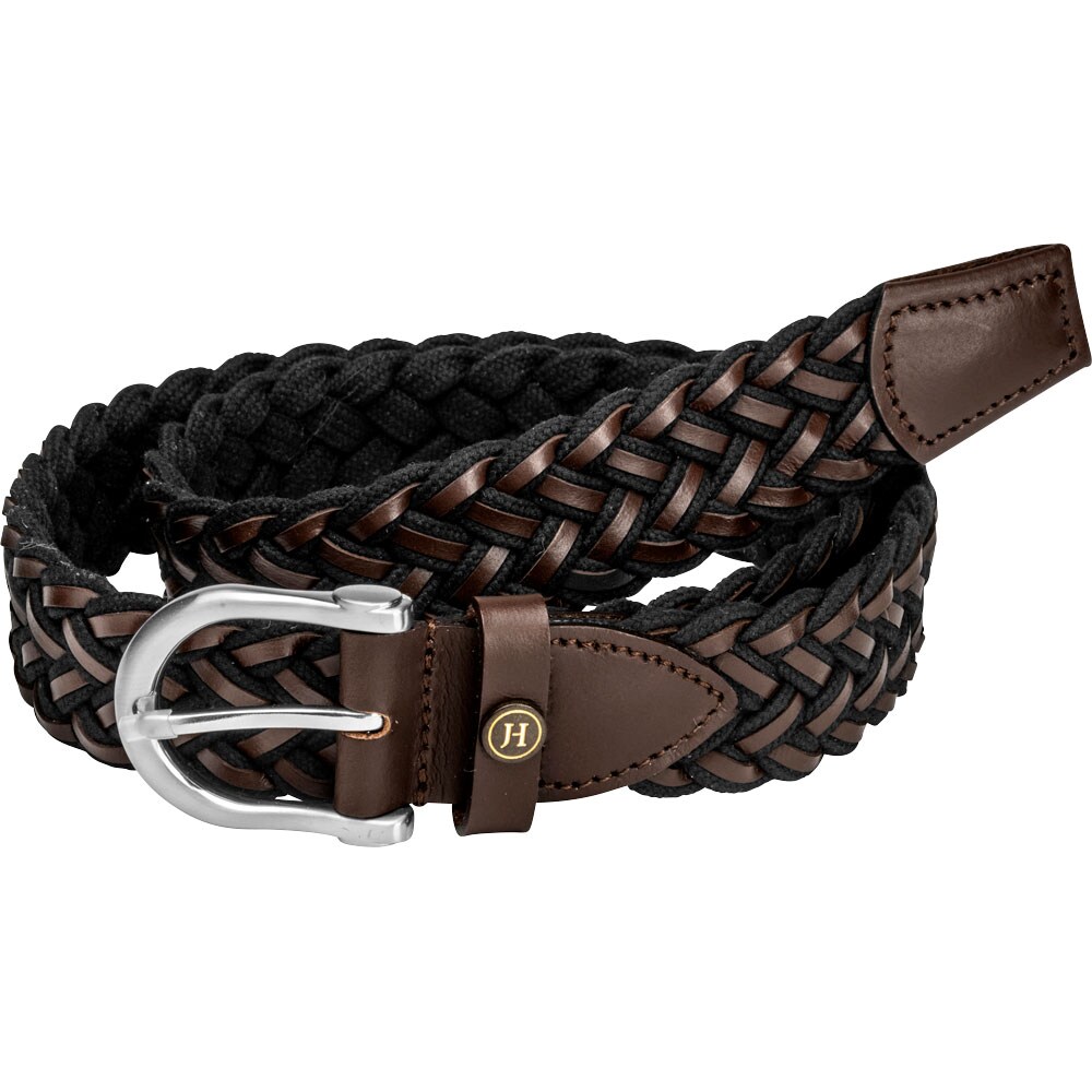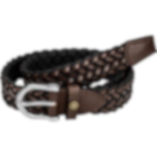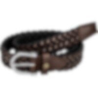 Punottu vyö, nahkaa ja tekstiiliä.
