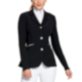 Joustava ja vartalonmyötäinen kilpailutakki kestävää nailonia. Edessä piilovetoketju- ja nappikiinnitys. Edessä kaksi vetoketjutaskua. Takana ratsastushalkiot.
