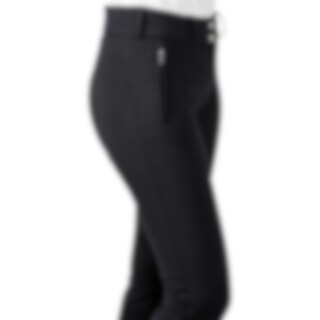 Ratsastushousut, satulaleikkaus ja Daewoo-kokopaikat. Kaksi vetoketjutaskua edessä ja joustavat lahkeensuut. Vyölenkit.