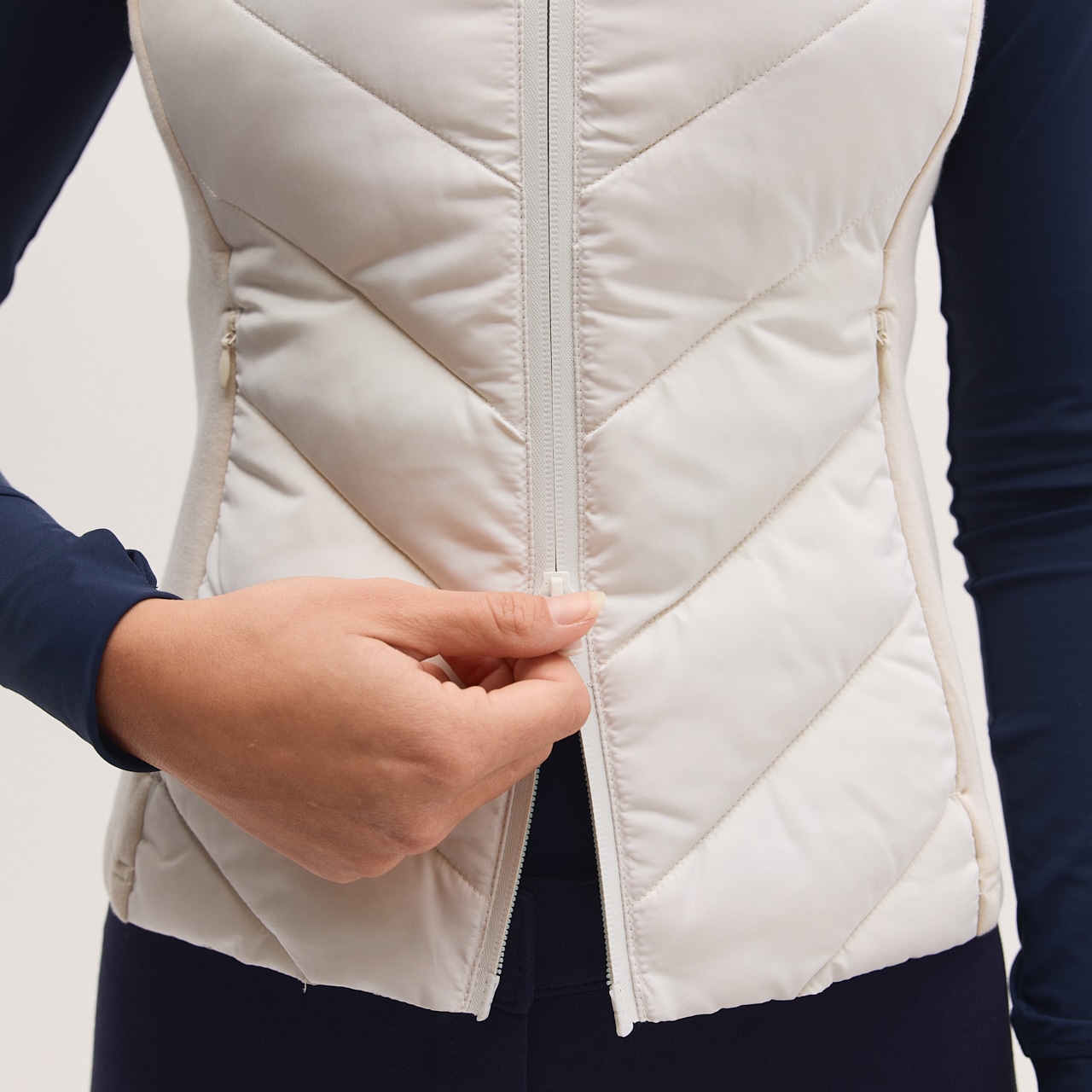 Urheilullinen toiminnallisuus ja tyylikäs ilme. Liivin hybridirakenne tarjoaa lämpöä ja tuuletusta siellä missä sitä tarvitaan, mikä tekee siitä täydellisen sekä intensiiviseen ratsastukseen että jokapäiväiseen käyttöön.