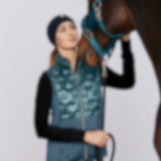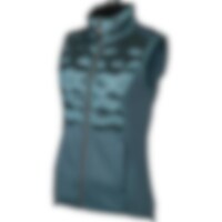 Vartalonmyötäinen pufferliivi hohtavapintaista kangasta. Täytetty untuvatäytettä muistuttavalla polyesterivanulla. Kaksi vetoketjullista taskua. Sivupaneelit Power stretch -fleeceä, mukava ja istuvuutta parantava harjattu sisäpinta. Kauluksen sisäpuoli fl