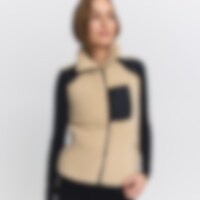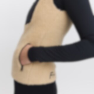 Korkeakauluksinen teddyfleeceliivi. Tikatut yksityiskohdat olkapäissä, rintataskuissa ja kauluksessa tekevät liivistä modernin ja trendikkään. Kaksi kätevää etutaskua ja rintatasku, jotka kaikki suljetaan vetoketjulla. Fairfield-logo selässä. Rento istuvuus.
